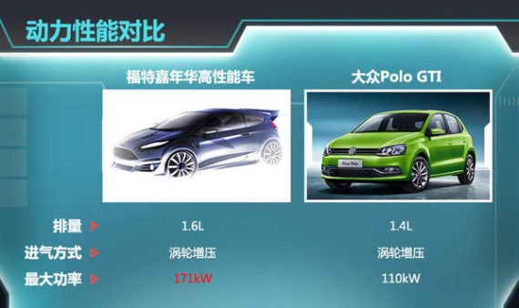 嘉年华全新高性能车将面向全球发售,引入国内市场后将与大众Polo GTI等知名“小钢炮”竞争。新车有望搭载经过重新调校的1.6L四缸涡轮增压引擎,最大功率可达到171kW,比嘉年华ST提升37kW。即将在今年推出的新款Polo GTI,搭载EA211系列的1.4TSI发动机,最大功率已提升至110kW。两者对比来看,嘉年华全新高性能车动力输出将优于新款Polo GTI。