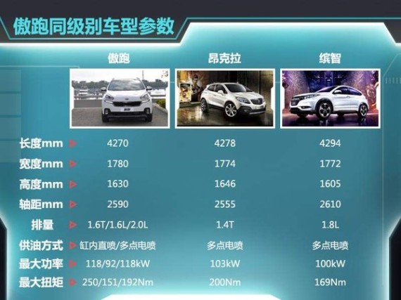 随着近年汽车市场需求的不断多元化,小型SUV的受欢迎程度正逐步上升,随之而来的是竞争的残酷性。别克昂克拉、本田缤智已先后问世,并且在同级别车型中拥有不错的市场表现,与这两款车型相比,东风悦达起亚傲跑无论在车身尺寸、还是在动力配备,抑或是车型选择上均有一定优势。