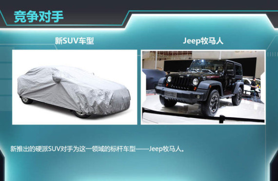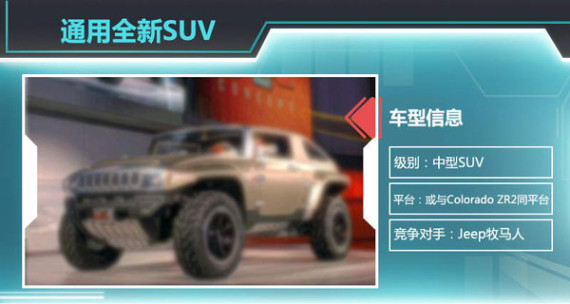 这款通用将推出的硬派SUV的竞争对手直指Jeep牧马人,Jeep牧马人一直是硬派SUV中的标杆车型。强悍的外表,坚固的车身以及功能强大的四驱系统使得它成为了越野车迷的最爱之一。相比于牧马人,这款硬派SUV身上具备众多军用越野车悍马的元素,再加上所应用的皮卡平台本身具有良好的越野性能,其具备的先天条件并不比对手逊色。(网通社 2015年1月30日 北京报道)相关文章阅读:·别克新英朗-通用新工厂投产 3月2日上市2015-01-28·通用自主研发CVT变速器 6款车型将搭载2015-01-28·通用斥资18亿扩充产能 将投产3款新车型2015-01-27