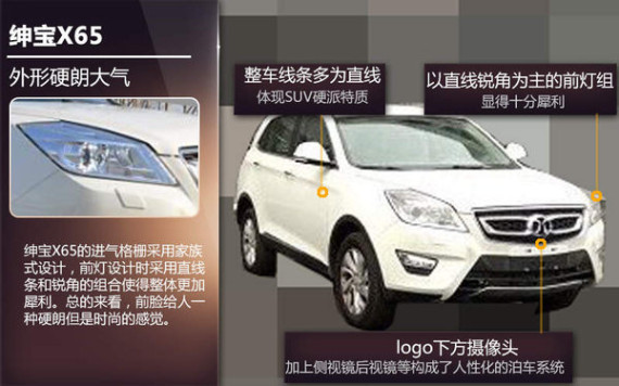 整体来看,尽管车的尺寸较同级SUV并不太大优势,但以直线条为主的车身以及车身元素设计带来的霸气硬朗的感觉还是多多少少地弥补了尺寸的不足。加之贴心的泊车设计,时下流行的全景天窗,日间行车灯,无钥匙进入等配置让X65从自主品牌脱颖而出,成为值得被广大消费者期待的一款车型。