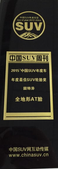 2015年2月3日,中国上海——近日,固特异SUV轮胎产品凭借其卓越的品质和广受赞誉的口碑,在越野E族主办的2015年度梦想评选和中国SUV网第八届年度评选中收获专业肯定。越野E族将“年度轮胎品牌”授予了固特异,而固特异牧马人全地形静音装甲越野轮胎(Wrangler AT/SA)在稍后的中国SUV网的评选中夺得“年度最佳AT胎”大奖。