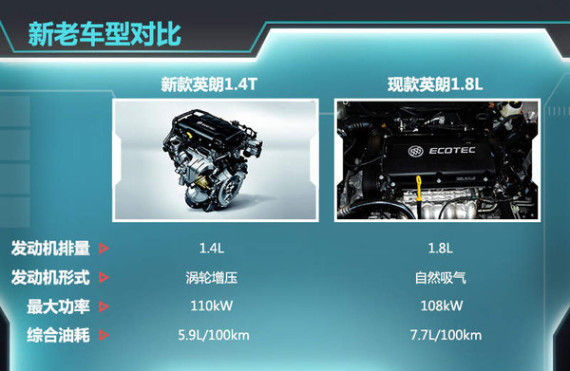 全新英朗将会搭载两套全新的动力总成。其中,通用最新研发的1.4L涡轮增压直喷发动机与7速DCT双离合变速箱搭配是新英朗的最大亮点。这台发动机的最大功率为110kW,最大扭矩达到了235N·m。在轻量化车身技术的配合下,其综合油耗为5.9L/100km,相比老款英朗1.8自然吸气发动机的7.7 L/100km降低了20%,提升了动力性能的同时实现了更低的排放。