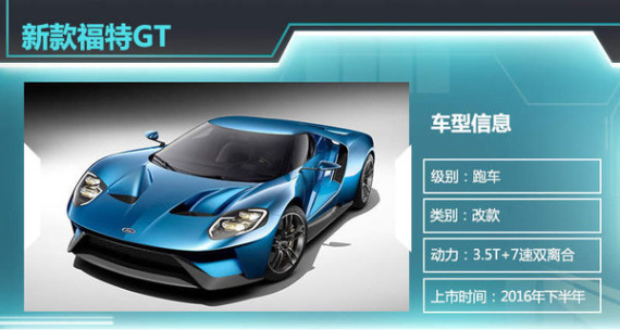 在今年1月举办的北美国际车展上,福特发布了新款GT超级高性能跑车,该车是福特此前宣布推出的12款性能车型中最为重量级的产品。“全新福特GT是超级跑车的最佳典范。”福特汽车集团全球产品开发副总裁宁睿(Raj Nair)表示。近日,福特官方发布,新款福特GT将搭载3.5T发动机匹配7速双离合变速箱,预计将在明年下半年上市。