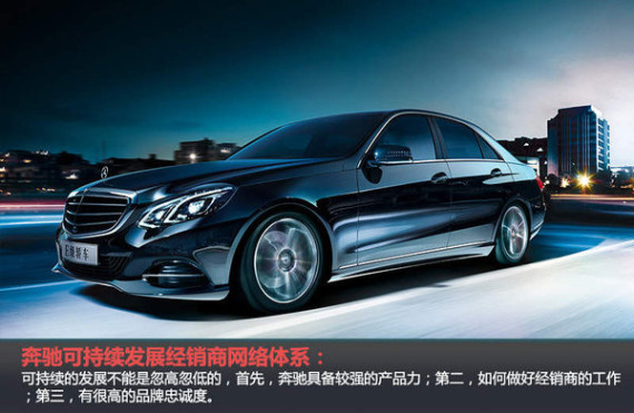 可持续发展不能是忽高忽低的,首先,奔驰具备较强的产品力;第二,如何做好经销商的工作,通过销售、售后和其他衍生服务能赚到钱,这是战略投资人投资的目的之一;第三,有很高的品牌忠诚度,这是厂商和经销商关系的维系的保障,不仅仅是互利的赚钱关系,奔驰非常强调品牌忠诚度和信任度;另外,还要有高效的网络,高效的网络不以数量衡量,而以效果衡量,什么样的发展及运营模式才能实现这种高效,这种体系化的高效会在未来三到五年实现,确保销售、售后及其他的业务能在完善的网络布局基础上实现,我想对销售和售后最大的支持就是高效的网络。