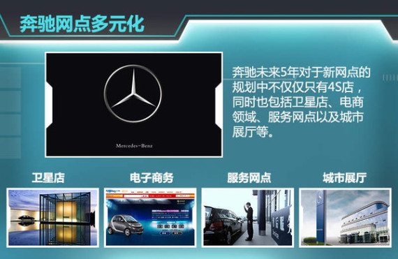 这个战略规划将指导未来五年网络的发展,这五年恰恰是对奔驰品牌发展至关重要的五年,这一规划将为奔驰进一步夯实中国市场基础,并为实现下一步销售及其他业务目标奠定基石。简而言之,未来奔驰不会简单地以数量来衡量网络覆盖效果,而是以是否能达到最佳的效率来衡量。我们的网点是多元化发展的,这个多元化包括大家熟悉的4S店,也有我们单一的销售网点和服务网点。