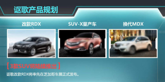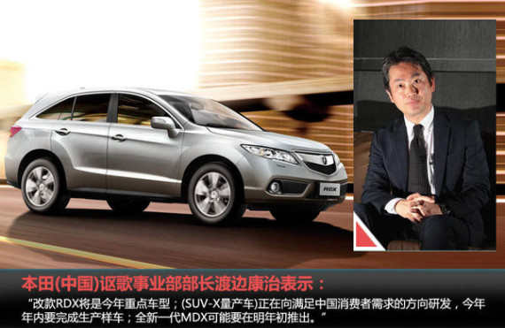 在讴歌的SUV产品矩阵中,目前共有RDX、MDX以及ZDX三款车型,其中MDX在2013年已完成改款,但该车换代车型将在明年年初上市;销量占比最大的RDX改款车型将在本月开幕的芝加哥车展中发布。除RDX是今年发展重中之重外,随着国产时间日益临近,明年国产的准备工作同样也不容忽视。