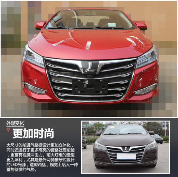 新款纳智捷5 Sedan的外观与动力一样变动不小,从所曝光的谍照来看,是由现款车型的基础上进行升级而来,大尺寸的前进气格栅设计更加立体化,同时还进行了更多高亮的镀铬处理前脸,更富有视觉冲击力。前大灯组的造型更为犀利,尤其是最外两侧獠牙式设计的LED光源,造型凶猛,视觉上给人一种蓄势待发的气势。雾灯区域也进行了相对应的升级,整车前脸相比老款更加激进,更富动感。