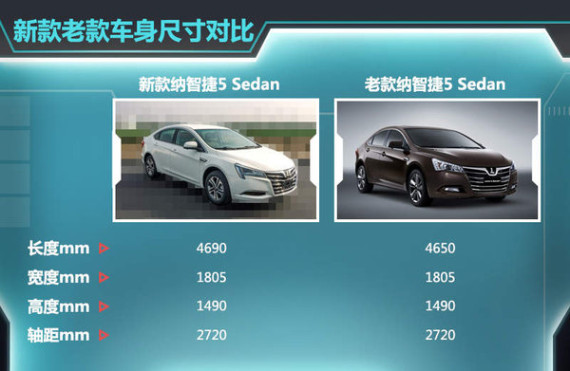 新款纳智捷5 Sedan车身长宽高分别为4690/1805/1490mm,轴距则达到2720mm,与老款相比车身尺寸变化不大,仅在车身长度上相差40mm。对于日常乘坐上的不同感受,日后,新款纳智捷5 Sedan上市,网通社将做进一步报道。