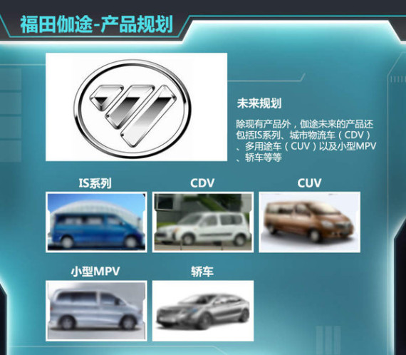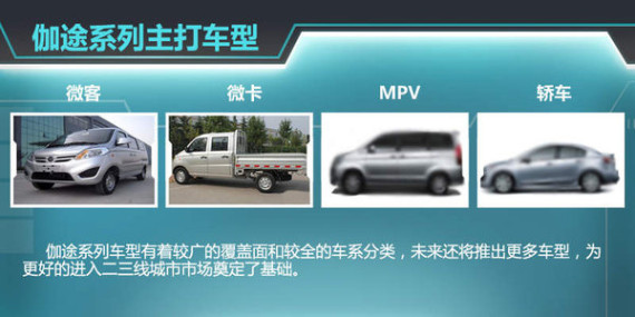 目前上市的情况来看,伽途V系、伽途T系、迷迪系列已经上市并开始销售,伽途IS系与伽途CUV系列将在2016年推出,后续规划还包括CDV以及经济性轿车、小型MPV等,形成六大系列超过100多款产品,以便丰富伽途未来的产品线。
