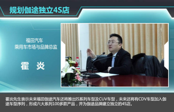 霍焱表示,未来的中国7座及以上乘用车市场的规模将有可能突破500万辆大关,长远来看,它的增幅将会超越SUV市场,成为市场上前景最为看好的细分车系。而据网通社从福田汽车官方获悉的消息,伽途系列产品在不久的将来会脱离商用车的销售线,福田正规划为伽途产品建立自己的4S店,这将为福田汽车将来争夺这块肥沃的市场奠下坚实的基础。