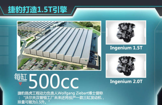 对于自主研发的全新引擎,捷豹路虎工程动力负责人Wolfgang Ziebart博士曾表示:“沃尔夫汉普顿工厂未来还将投产一款三缸发动机,排量可能为1.5升。”据了解,Ingenium系列发动机均基于模块化的500cc气缸单元打造。具体来讲,就是所有的型号都采用相同口径、相同冲程、相同缸间距的气缸单元,且每缸的排量统一为500cc,这一策略和宝马以及奔驰的策略相似。也就是说,未来将投产并搭载于捷豹XD车型上的Ingenium系列1.5升涡轮增压发动机将采用三缸布局。