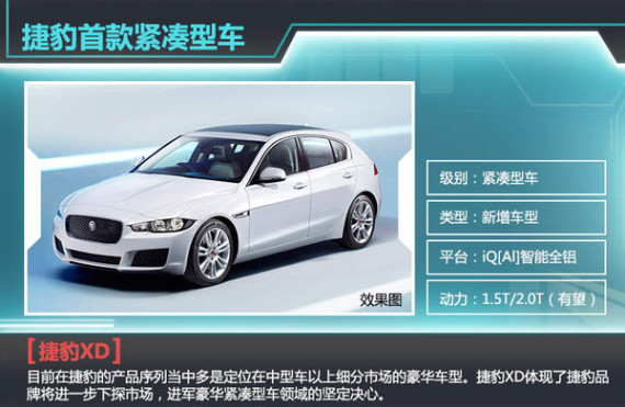 目前在捷豹的产品序列当中多是定位在中型车以上细分市场的豪华车型,其在紧凑型车市场的产品投放尚属空白。全球品牌总监曾在接受采访时表示:“未来捷豹进军小型车市场的话,我们将打造具备先进技术并能够让我们在竞争中领先的优雅车型。”毫无疑问,这体现了捷豹品牌将进一步下探市场,进军豪华紧凑型车领域的坚定决心。