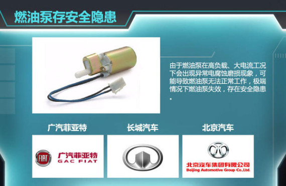 据了解,此次召回原因是供应商提供的燃油泵存在安全隐患。由于燃油泵在高负载、大电流工况下会出现异常电腐蚀磨损现象,可能导致燃油泵无法正常工作,极端情况下燃油泵失效,存在安全隐患。