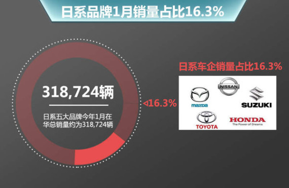 近日,包括马自达、日产、丰田、本田及铃木在内的五大车企公布了今年1月在华销量,总销量约为318,724辆,同比去年同期298,869辆,上升了6.6%。在产品层面,SUV成为日系增长的推动力。日产迎来新车启辰T70,本田去年推出的XR-V、缤智两款小型SUV对销量的保持功不可没……而日系品牌的这一“SUV风潮”还将在整个2015年延续下去。