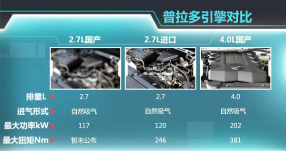 丰田七座SUV普拉多目前在国内只生产4.0L排量的一款车型,相对小排量的2.7L车型一直以进口方式引入。在这个盛行小排量车型的时代,一汽丰田也将于今年3月底国产搭载2.7L小排量引擎的普拉多。随着小排量引擎的搭载,车型在售价方面也将更亲民。就拿福特锐界来说,目前以进口的方式引入国内销售,动力搭载了2.0T以及3.5L V6两款发动机,售价区间在29.28-42.98万元。而在国产后将进一步降低制造成本以及进口所需的费用,预计入门级车型的售价在25万起,这一价格足够与大众途观高配车型较量。