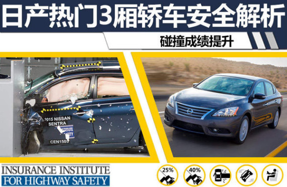 日产Sentra作为与轩逸 (配置|询价)同平台车型,主打北美市场,因此全新2015款Sentra在外观等部分与国内版轩逸如出一辙,该车延续了日产家族式设计风格,全新的前脸造型与车尾相呼应,并且在外形时尚的3厢结构衬托下年轻而犀利。日前媒体从IIHS获悉,2015款Sentra刚刚在美国进行了碰撞测试,其在安全方面表现突出,所有考核项目中均拿到最高评价。此前2013款Sentra也曾在美国进行过碰撞测试,但在最为严苛的正面25%碰撞考核中成绩较差,模拟驾驶员假人身体多处存在受伤风险。相比之下,2015款Sentra在碰撞成绩与人员保护方面有较大提升。