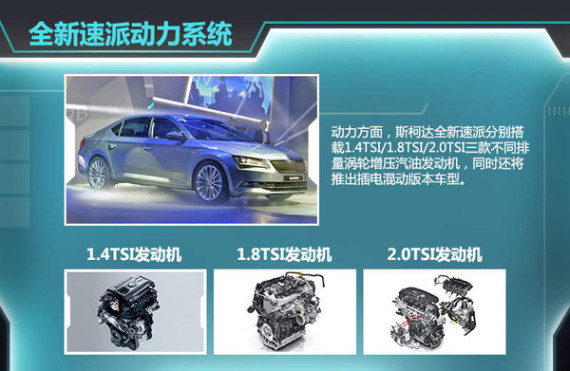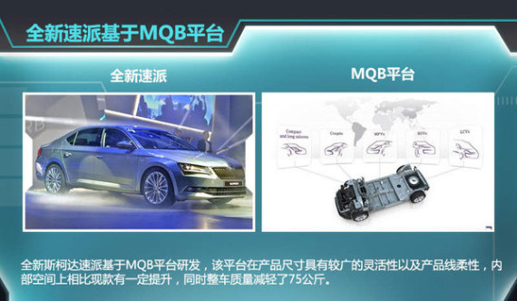 斯柯达全新速派基于MQB平台研发设计,与全新帕萨特同平台。新车外形设计借鉴了此前发布的概念车Vision C概念车的设计元素,轴距增加80mm,内部空间表现更优异,后备最大箱容积达1760升,实用性及性价比都有所提高。此外,新车在配置上也有很大改善,其信息娱乐系统可与苹果CarPlay兼容,后期有望配备无线智能充电系统。全新速派上市后竞争对手直指福特蒙迪欧、现代索纳塔9等车型。