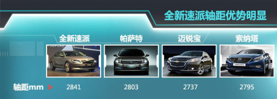 全新斯柯达速派得益于MQB平台技术的应用,轴距上相比现款增加了80mm,原本就以后排空间为亮点的速派如虎添翼。虽然加长了但侧面的线条设计使得车身比例上并无违和感,十分协调。在储物空间方面,全新速派后备箱储物容积增加至625升,后排座椅放倒后可扩展至1760升。同时身高为181mm,体重超过200斤的体验者,坐进该款产品的驾驶舱内,并不十分容积,头部空间还有1拳多的距离,另外在保证前排座椅角度不变的情况下,体验者坐进后排后头部空间同样为一圈,而腿部空间则有2拳左右,另外相比同级迈锐宝的2737mm轴距与索纳塔2795的轴距都有一定优势。