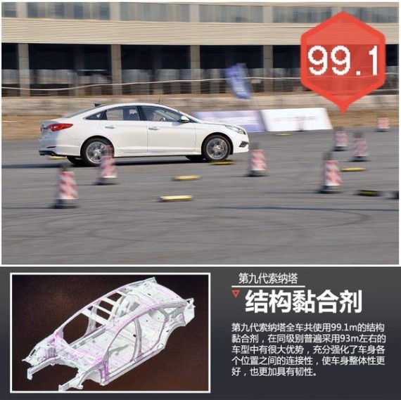 如果说第九代索纳塔仅在车身刚性上进行调整,那么势必会影响到该车的韧性,就是通常说的"钢过于硬了之后只会断不会折",因此全车通过使用99.1m的结构黏合剂,强化车身各个位置之间的连接性,使车身整体不仅“硬”,而且还更加坚韧,这一数值在同级别车型中也有一定优势。