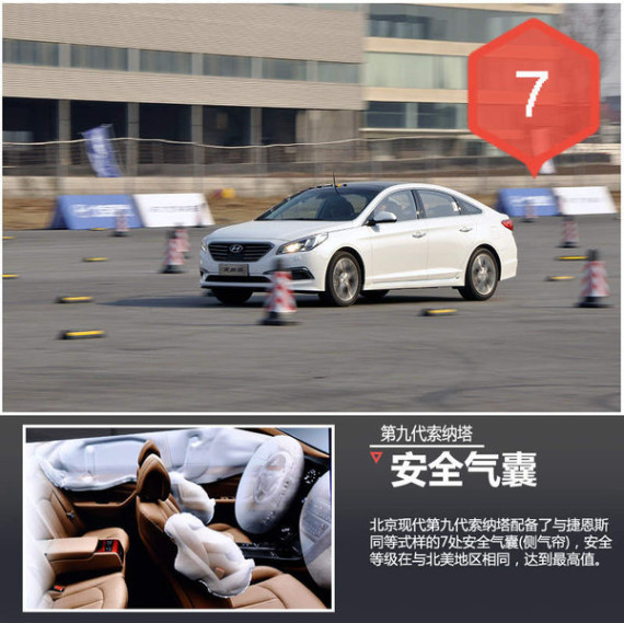 此外,北京现代第九代索纳塔在被动安全配置上增加了腿部气囊,以及与雅科仕、捷恩斯等高端车型相同式样的前排双气囊,同时还应用了振幅感应侧气帘,加起来多达7处,同时还对安全带进行了升级处理,防止车辆碰撞时安全带松开,同时还使下肢伤害最小化,最大程度上保证车内乘坐人员的安全。