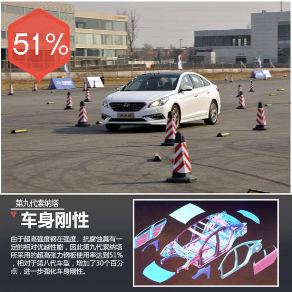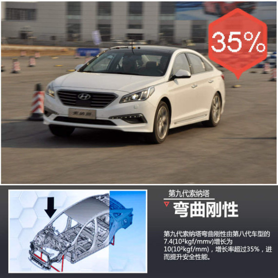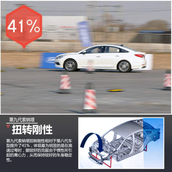 需要指出的是,第九代索纳塔经过增加车身刚性以及韧性之后,车身的弯曲刚性以及扭转刚性均相应得到很大提升,其中弯曲刚性增长率超过35%,扭转刚性提升41%,这在车辆行驶过程中就会有切身感受。通常在高速过弯时,刚性低的车辆在巨大离心力下变形,重心的快速转移造成侧倾幅度明显,后轮也开始因离心力而产生偏滑,转向因而难以掌握,就容易产生失控;而第九代索纳塔由于高弯曲刚性以及扭转刚性,在弯道中的动态不会因为变形而导致不稳定,从而使操控性得到提升。