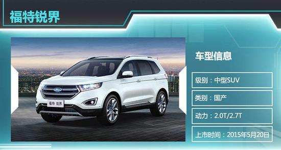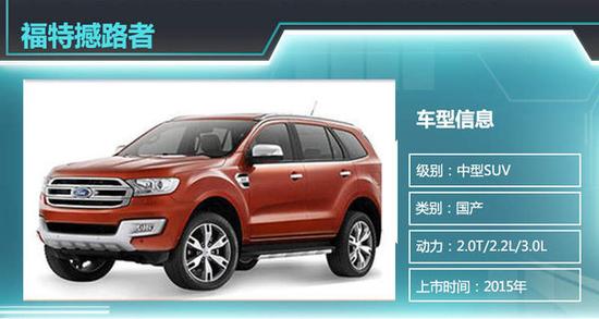 在江铃渠道国产并销售的撼路者,也是福特今年在中国SUV市场的重要车型产品。全新撼路者定位七座硬派SUV车型,与福特Ranger皮卡同平台打造,采用非承载式车身。动力方面,全新撼路者将搭载2.0L EcoBoost四缸汽油发动机,这款涡轮增压直喷发动机的最大功率为175KW,峰值扭矩为360N?m,此外还有3.0L DuratorqTDCi五缸柴油发动机和升级版2.2L DuratorqTDCi四缸柴油发动机可供选择。传动部分与发动机匹配的是6速手动或6速手自一体变速箱。新车上市后将与广汽丰田汉兰达、北京现代全新胜达等车型竞争。