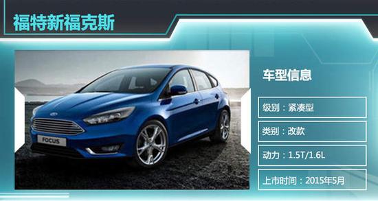 2014年1-11月,长安福特旗下福克斯品牌车型销量达到35.98万辆,在长安福特同期整体销量中占近半壁江山,其重要程度可想而知。2015年二季度,长安福特将推出新福克斯,新车预计将在上海车展首发。新车将采用家族式马丁前脸,头灯组也采用了扁平化设计。新车将搭载一款1.5T发动机,现款车型配备的1.6L自然吸气发动机也有望得到延续。