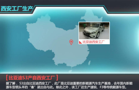 据了解, S3出自比亚迪西安工厂,此厂是比亚迪重要的新能源汽车生产基地,去年国内新能源车型领头羊的“秦”就出自与此。除此之外,该工厂还生产速锐、F3等传统能源车型,目前比亚迪西安新能源汽车基地一期项目投产后将形成20万辆轿车,10万辆新能源轿车的生产规模。值得一提的是,S3的兄弟车型“宋”也有望在该工厂投产。