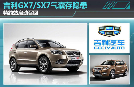 GX7和SX7分属于吉利汽车旗下的两款产品,上述两款车定位紧凑级SUV细分市场,是吉利汽车旗下两款热销的SUV车型。日前,国家质检总局缺陷产品管理中心透露,因安全气囊存在隐患,吉利将召回部分新款GX7和SX7,并由生产企业成都新大地汽车有限责任公司实施。据统计,将有714辆车受到影响。