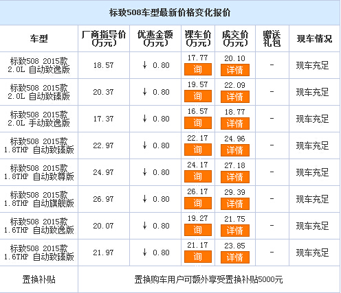 新浪银川汽车讯 近日,编辑从东风标致宁夏标龙4S店了解到,标致508 (配置|询价)现车销售,颜色可选,目前购车部分车型可优惠0.80万元,感兴趣的朋友可以到店咨询或电话垂询。