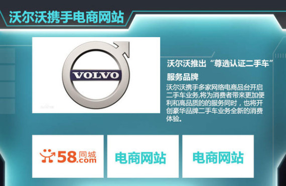 在“Volvo Way to Market”全球营销战略中,“数字营销”是沃尔沃重点关注的领域之一。近日,媒体从沃尔沃中国内部人士获悉,沃尔沃将携手58同城等电商战略合作伙伴打造全新的O2O+C2C商业模式,推出“尊选认证二手车”服务品牌。该服务旨在通过整合互联网与线下实体店资源,让互联网成为线下交易的前台,顾客在海量信息中轻松掌握市场上沃尔沃二手车资源分布情况。