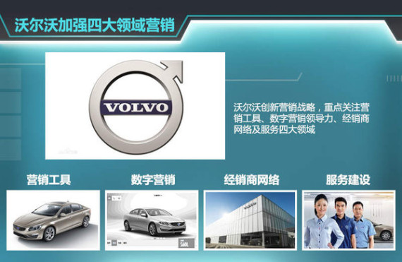 沃尔沃汽车去年在华累计销量达到81,221辆,创造了在华销售的新记录,同时中国也超越美国成为沃尔沃全球第一大市场。随着整体销量的不断增长,沃尔沃也在不断调整营销战略以应对全新的局面。去年底,沃尔沃汽车集团宣布启动“Volvo Way to Market”全球营销新战略,重点关注营销工具、数字营销领导力、经销商网络及服务四大领域。沃尔沃希望通过营销模式的创新与变革,取得市场及销售工作的新突破。