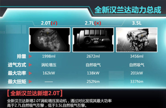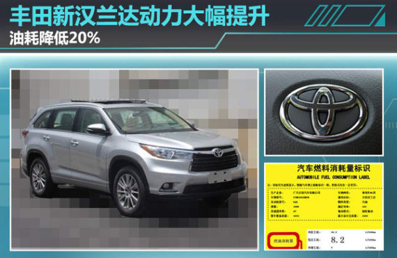 广汽丰田在今年1月份推出了全新一代凯美瑞,该车最大的亮点便是首次采用了全新2.0L直喷发动机,值得一提的是,与之同平台的全新一代汉兰达 (配置|询价)也将采用全新2.0T引擎,该车也成为广汽丰田品牌首款采用2.0T车型。近日,中华人民共和国工业和信息化部透露:广汽丰田全新汉兰达2.0T车型最大输出功率达到162kW,较现款2.7L有大幅度提升,同时,2.0T车型百公里综合油耗仅为8.2L,较2.7L车型降低了17.17%,充分提升了动力性以及燃油经济性。