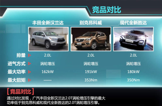 别克昂科威以及现代全新胜达是当前国内主流中型SUV车型的标杆级产品,未来广汽丰田全新汉兰达将以其为对手。尽管在动力性上与两者之间有一定距离,但在功能性方面,全新汉兰达在兼顾家用需求的同时还能满足越野需求。