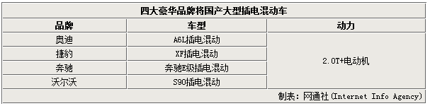四大豪华品牌 将在华投产大型插电混动轿车