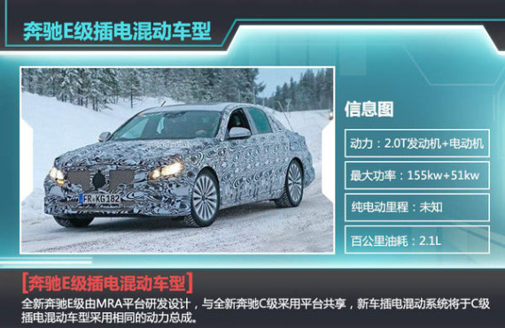 根据奔驰此前公布的规划,未来旗下所有车型将推出插电混动版本。戴姆勒集团首席执行官蔡澈博士进一步证实到:“2016年全新一代奔驰E级即将在中国投产,该系列国产车型中将会新增插电混动车型并同期推出。”据了解,全新奔驰E级由MRA平台研发设计,与全新奔驰C级采用平台共享,新车插电混动系统将于C级插电混动车型采用相同的动力总成,搭载一台最大功率155kW的2.0T发动机与51kW的电动机,匹配7速自动变速箱。此外,奔驰E级插电混动车还将推出一款V6发动机搭配电动机的车型,这款六缸发动机的排量将在2.2-3.5L之间,最大功率可达206-294kW。传动方面,新一代E级有望搭载9速自动变速箱。