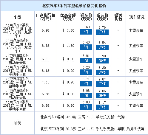 新浪汽车银川讯 近日,编辑从北京汽车宁夏怡广4S店了解到,北京汽车E系列现车销售,颜色可选,目前购车部分加装车型可优惠1.30万元,感兴趣的朋友可以到店咨询或电话垂询。