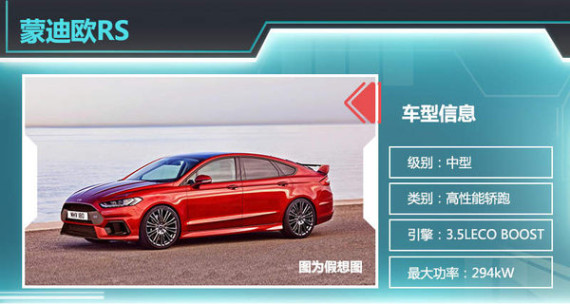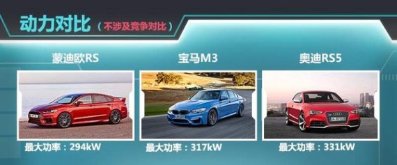 在动力方面,根据国外媒体推测该车有望搭载3.5L V6 Eco Boost 发动机,最大功率可达294kW。如此“暴力”的参数,已经与一些豪华品牌的性能车接近,宝马的M3最大功率为317kW;奥迪RS5最大功率为331kW。但蒙迪欧RS显然不会把以上两款车作为竞争对手,而目前在中型车细分市场中,很难找到与蒙迪欧RS旗鼓相当的对手。