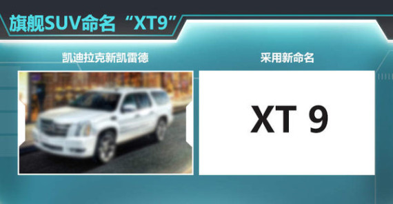 凯迪拉克此前推出了新命名规则, 轿车产品将采用“CT”加数字的命名方式,首款采用新命名体系的车型为即将于月底发布的旗舰轿车CT6;SUV车系将采用“XT”加数字的命名方式,字母后的数字将反映车型相应的尺寸,以及在凯迪拉克产品阵营中的定位。凯迪拉克官方表示,新命名计划将是一个循序渐进的过程,只有在推出改款或者全新换代车型时,才会采用新的命名规则。据悉新一代SRX跨界车在新体系下或将命名为XT5。旗舰SUV凯雷德在推出换代车型时也将纳入新命名体系,鉴于该车是凯迪拉克SUV阵容中最高级别车型,在新命名体系下也将采用后缀数字最大的名称,有望命名为“XT9”。
