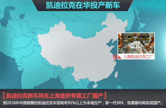 去年12月,通用汽车在上海宣布了最新的凯迪拉克中国战略。未来5年内,凯迪拉克将为中国市场带来9款全新车型。到2018年,在中国销售的凯迪拉克将有95%以上为本地生产。通用汽车于2013年6月在上海金桥开工建设凯迪拉克专属工厂,该基地将于今年正式投产,未来包括新一代SRX、新一代凯雷德在内的SUV产品均将实现国产,进一步提升产品在本土市场的竞争力。