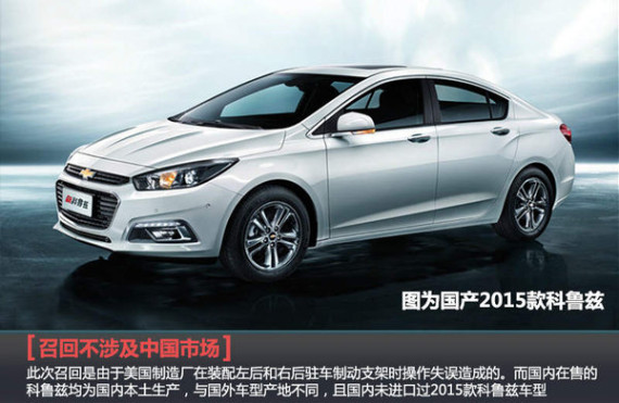 科鲁兹目前已入华多年,并由合资车企上海通用雪佛兰以国产形式销售,而2015款国产科鲁兹车型也已在华上市。对于国产科鲁兹车型是否存在与国外相同的安全隐患,通用汽车官方表示,此次召回是由于美国制造厂在装配左后和右后驻车制动支架时操作失误造成的。而国内在售的科鲁兹均为国内本土生产,与国外车型产地不同,且国内未进口过2015款科鲁兹车型,因此中国不涉及此次召回。