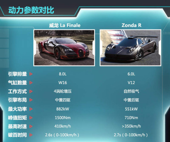 同级别劲敌比拼 威龙La Finale优于Zonda R