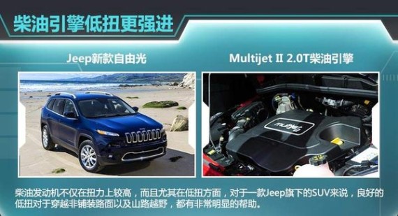 如今世界各国对汽车排放标准日益严苛,各大车企都在推小排量的增压引擎。Jeep也将顺应这一潮流在旗下车型普及小排量引擎。Jeep品牌全球总裁麦明凯(Mike Manley)表示:“菲亚特拥有非常好的小排量汽油发动机和柴油发动机,这些都是Jeep需要的。”作为Jeep旗下的新生代“花旦”,新款自由光将搭载菲亚特的Multijet II 2.0T柴油引擎,新车上市后将继续竞争路虎揽胜极光。