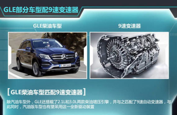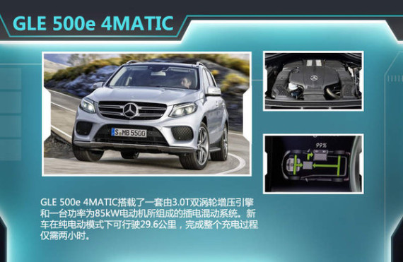 奔驰GLE最大的变化之一便是针对动力的丰富,新车搭载了3.0T和4.7T两款双涡轮增压发动机外,其中前者最大功率245kW,最大扭矩480N·m;而后者上述两项参数则分别达到了了320kW以及700N·m。除此之外,GLE还增加了一款插电混动车型,并命名为GLE 500e 4MATIC,其搭载了一套由3.0T双涡轮增压引擎和一台功率为85kW电动机所组成的插电混动系统,并匹配了7速7G-TRONIC自动变速箱。另据了解,新车型在纯电动模式下可行驶29.6公里,完成整个充电过程仅需两小时。同时GLE还将搭载2.1L和3.0L两款柴油增压引擎,并与之匹配了9速自动变速器,而汽油版车型也有望采用这一全新驱动装置。