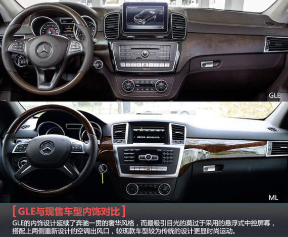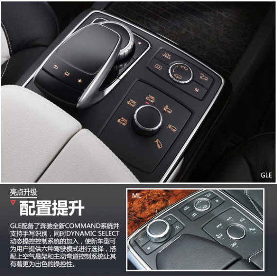 内饰方面,GLE同样延续了奔驰一贯的奢华风格,而最吸引目光的莫过于采用的悬浮式中控屏幕,搭配上两侧重新设计的空调出风口,较现款车型较为传统的设计更显时尚运动。另外现售车型所采用的四幅多功能方向盘也改为了目前更为流行的三幅式设计,并采用了镀铬材质。另外GLE配备了奔驰全新COMMAND系统并支持手写识别,同时DYNAMIC SELECT动态操控控制系统的加入,使新车型可为用户提供六种驾驶模式进行选择,搭配上空气悬架和主动弯道控制系统让其有着更为出色的操控性。