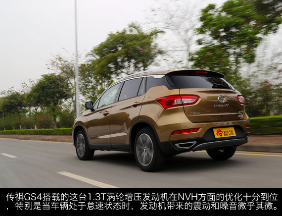 在实际试驾的过程中,传祺GS4搭载的这台1.3T涡轮增压发动机表现中规中矩,虽然在1500rpm时发动机就能够输出最大扭矩,但真正感受到推背感还要再向上提升一段。不过,由于油门初段比较灵敏,因此动力的滞后感并不是十分明显。此外,值得一提的是,传祺GS4搭载的这台1.3T涡轮增压发动机在NVH(噪声、振动、声振粗糙度)方面的优化十分到位,特别是当车辆处于怠速状态时,发动机带来的震动和噪音微乎其微。