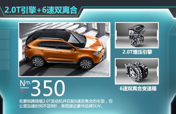 而在“大排量”发动机方面,上汽集团则选择了自主研发,据上汽集团官方介绍,大排量MGE系列发动机的研发工作是在与通用合作开发SGE系列发动机之前,是上汽集团很重要的一次动力总成开发工作。大排量发动机MGE(Medium Gasoline Engine)系列配合TST 6速双离合变速器,此次名爵锐腾搭载的就是这套2.0T涡轮增压发动机就是MGE发动机,该引擎最大功率为162千瓦,峰值扭矩达到350牛米。