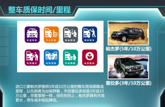 特点:入门车售价,普拉多占优/7座入门车售价,帕杰罗占优