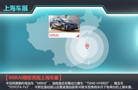本届上海车展,丰田可谓阵容强大,燃料电池车“MIRAI”,帮助丰田车队在世界耐力锦标赛(WEC)中摘得2014年度厂商总冠军、车手总冠军的油电混合双擎动力赛车“TS040 HYBRID”,能够实现人车相互沟通的概念车“TOYOTA FV2”,卡罗拉混动版,以及雷凌混动版都将亮相丰田展台,车型总数达到30款,由此可见丰田在中国推广混合动力车型的决心。