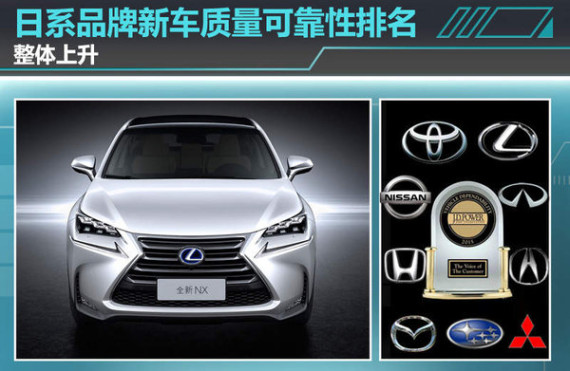 同比2014年日系品牌车型可靠性排名呈上升趋势